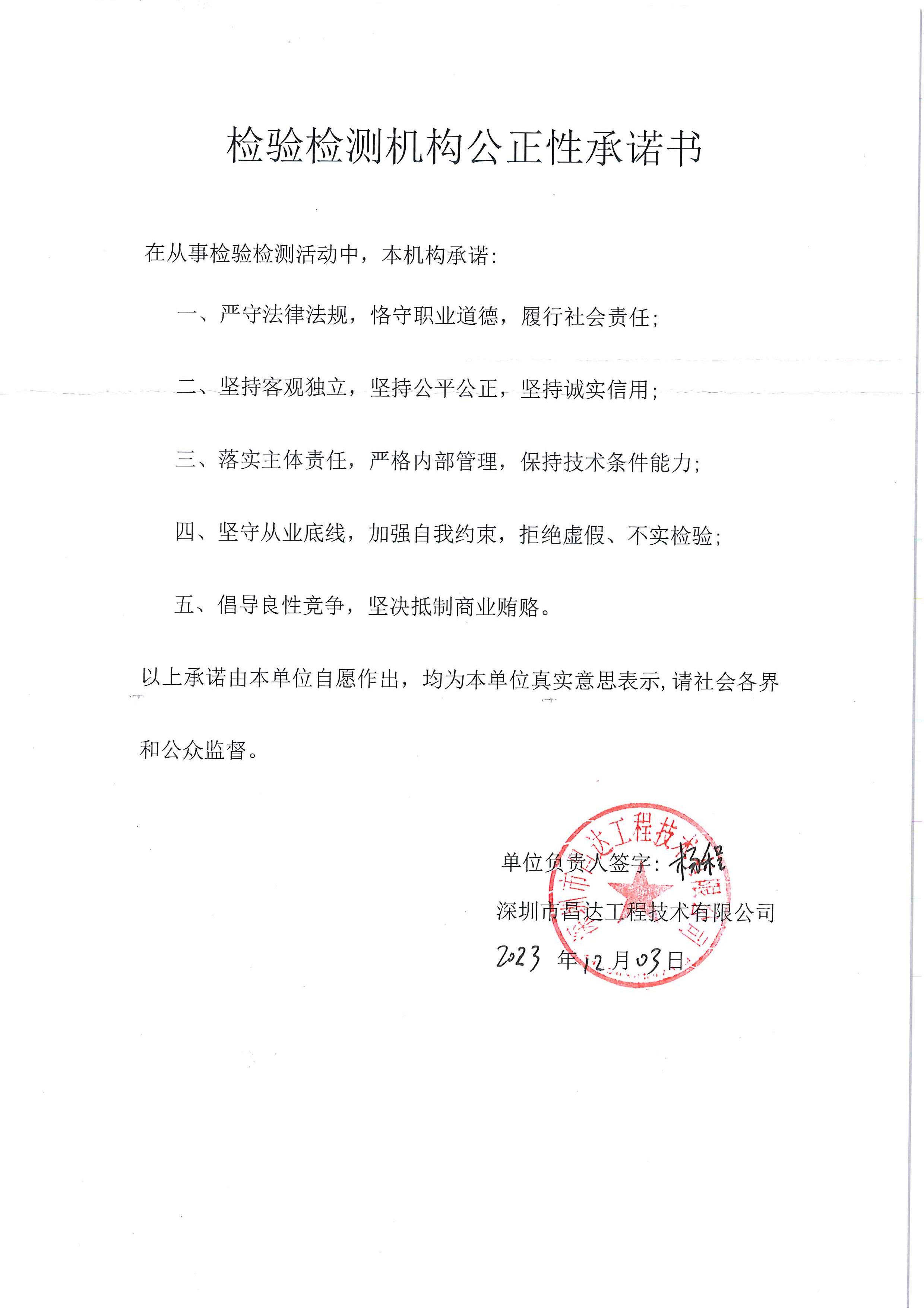 • 3、公司及其人員從事檢測活動,遵守國家相關(guān)法律法規(guī)的規(guī)定,遵循客觀獨(dú)立、公平公正、誠實(shí)信用原則,恪守職業(yè)道德,承擔(dān)社會責(zé)任。